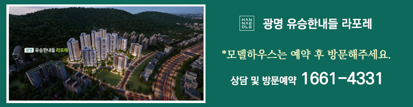 구름산지구에서는 유승종합건설이 첫 민간분양 아파트인 '광명 유승한내들 라포레'가 분양중입니다.